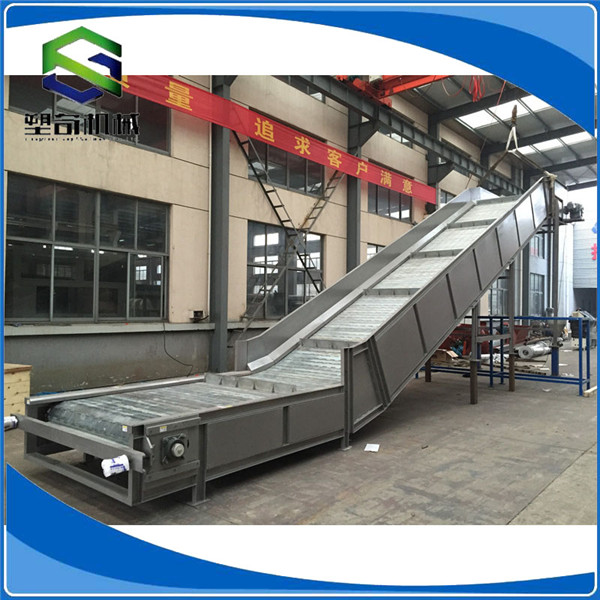 不銹鋼鏈板輸送機主要應用于玻璃瓶及易拉罐的輸送。