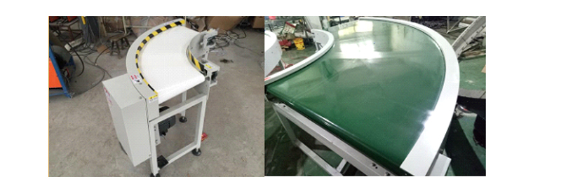 轉(zhuǎn)彎皮帶輸送機(jī)扇形皮帶加裝專用的防跑偏滾輪 (軸承外加聚甲醛POM)或者在輸送帶的外側(cè)高頻焊接導(dǎo)向筋使輸送帶運(yùn)行在專用的導(dǎo)軌中,輥筒采用專用的錐型包膠輥筒,廣泛應(yīng)用在食品、飲料、電子、煙草等行業(yè),我們可以選用較小直徑的滾筒,使轉(zhuǎn)角連接更加方便,完美的解決過(guò)渡問(wèn)題。